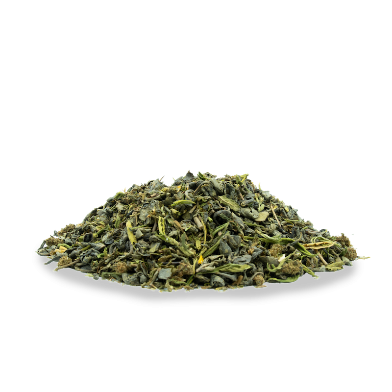 Thé Vert au CBD Voyage à Marrakech, une infusion à la fois rafraîchissante et relaxante qui vous plonge immédiatement dans l'atmosphère captivante des souks marocains. Ce mélange élégant associe les vertus du chanvre à des ingrédients sélectionnés pour leur qualité, procurant une expérience gustative à la fois unique et revigorante..